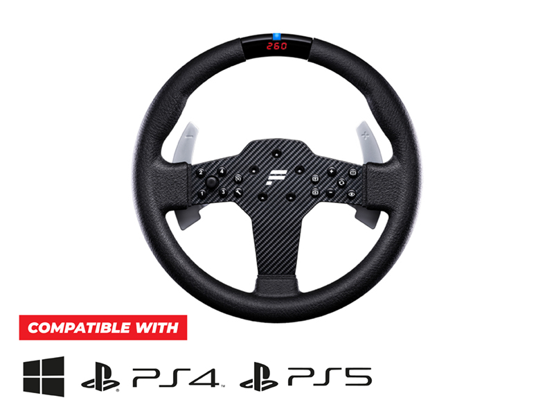 • Three-digit LED display smoothly integrated into the wheel rim below the RevStripe™ allows telemetry data such as speed or gears to be displayed in compatible games or third-party software