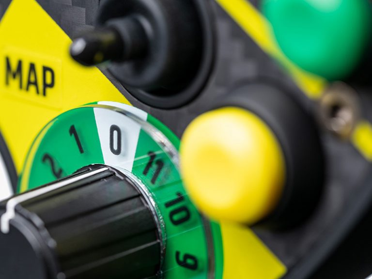 Create a stunning GT3-class steering wheel using the Podium Button Module Endurance.